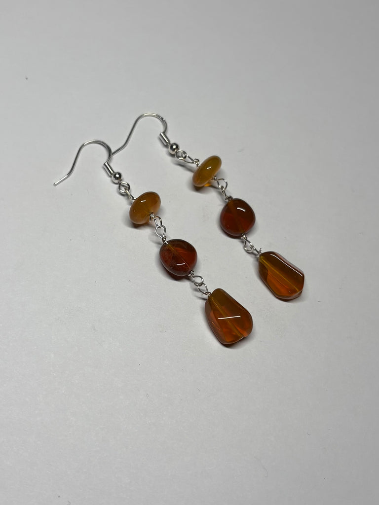 Oregon Fire Opal and sterling silver earrings created by Michelle of Outlaw Rocks. The earrings are approximately 2 1/2 inches in length and the opal is mined by Outlaw Rocks at our Opal Queen Mine.