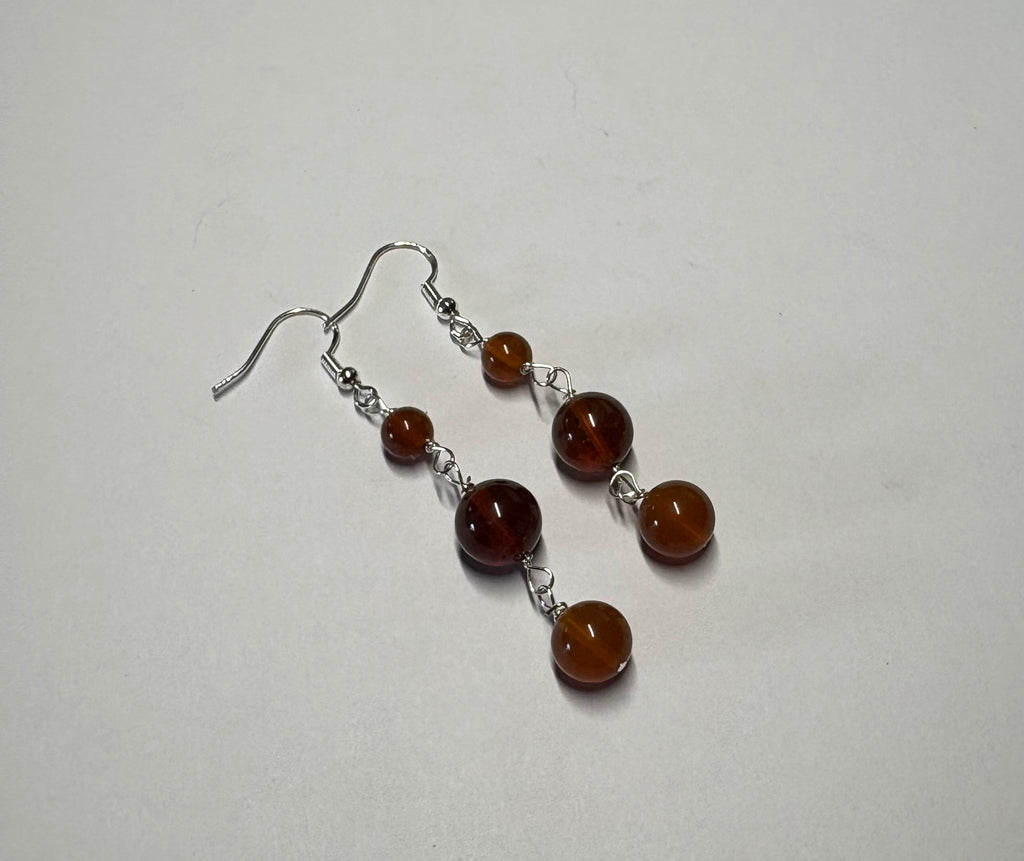 Oregon fire opal and sterling silver earrings created by Michelle of Outlaw Rocks. The earrings are approximately 2 1/2 inches in length and the opal is mined by Outlaw Rocks at our Opal Queen Mine.